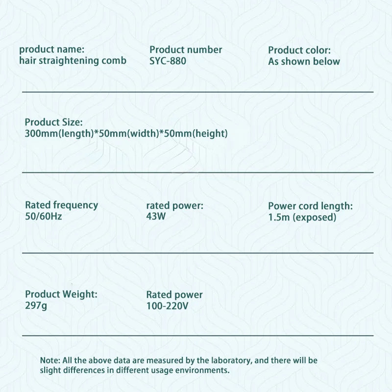 The 2025 Electric Hair Straightener features fast heating technology, ensuring a quick and efficient styling experience. Designed for professional use, this hot comb-style straightener offers negative ion hair care to minimize frizz and static, leaving hair smooth and shiny. Its ergonomic design makes it easy to use for a variety of hairstyles, providing salon-quality results at home.