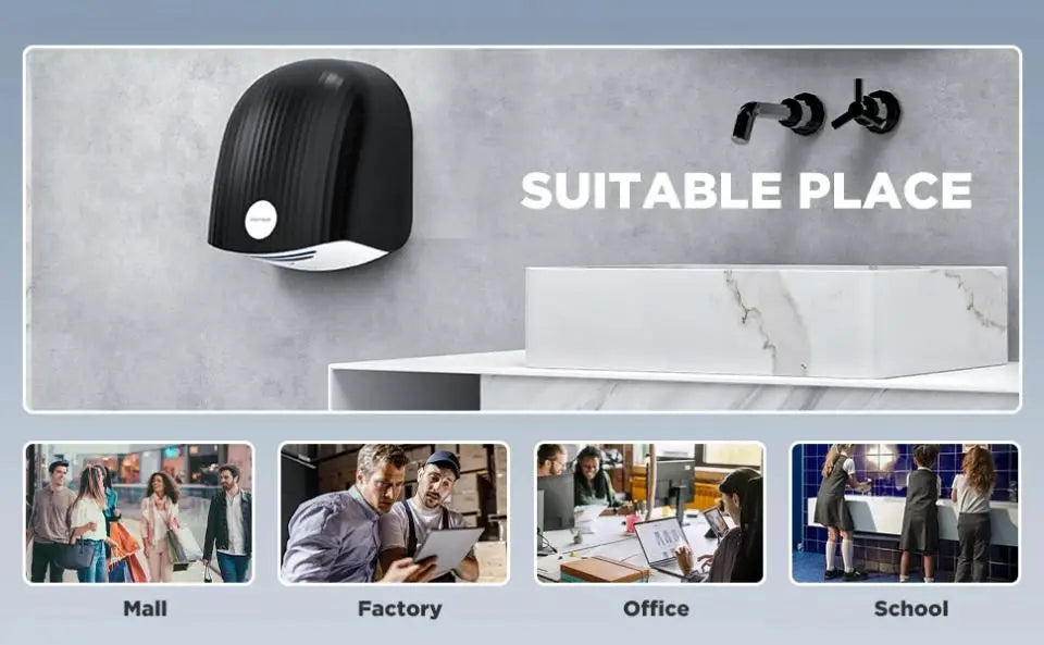 The Automatic Hand Dryer offers efficient hand drying with both hot and cold air options. Featuring high-speed wind and 1200W power, this induction-operated hand dryer is perfect for commercial bathrooms and toilets. Its sleek wall-mounted design ensures a hygienic, fast, and energy-efficient solution for high-traffic areas.