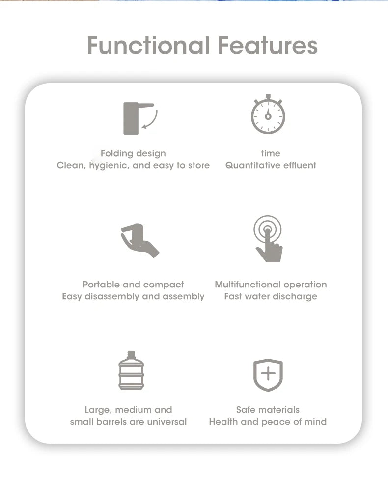 The Portable Electric Water Dispenser Pump offers a convenient and easy way to dispense water with a simple button control. Designed for home use, this foldable water bottle pump is compact and portable, making it perfect for everyday hydration. Its automatic dispensing function ensures smooth and efficient water flow, ideal for both small and large water bottles.