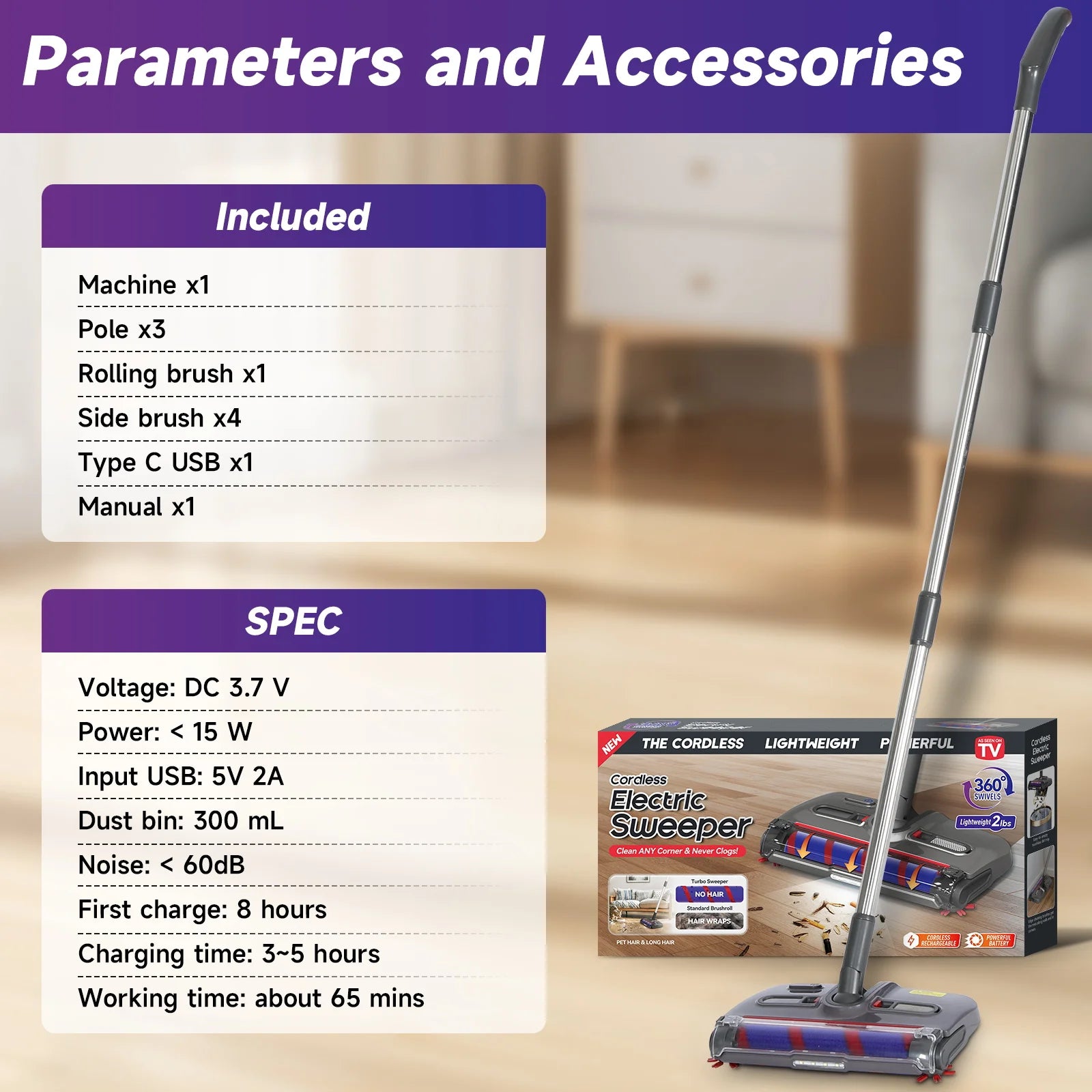 The Wireless Electric Spin Mop Cleaner is a smart, automatic floor cleaning solution designed to make your cleaning routine effortless. With powerful spinning action, it efficiently mops floors, while its rechargeable battery ensures convenience without the hassle of cords. Perfect for home use, this intelligent cleaning appliance combines the function of a mop and vacuum for a thorough clean.